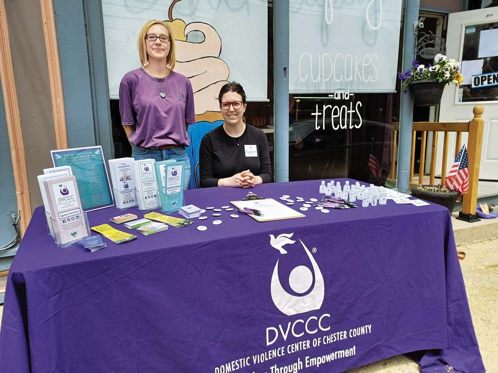 Activities took place on Main Street in the borough, where the businesses are located. Visitors were invited to shop in the stores and view live outdoor art demonstrations presented by local female artists. Danielle Dougherty, DVCCC director of philanthropic partnerships, was on hand offering small gifts and providing informational brochures about the agency, which provides programs and services for survivors of domestic violence in Chester County.
