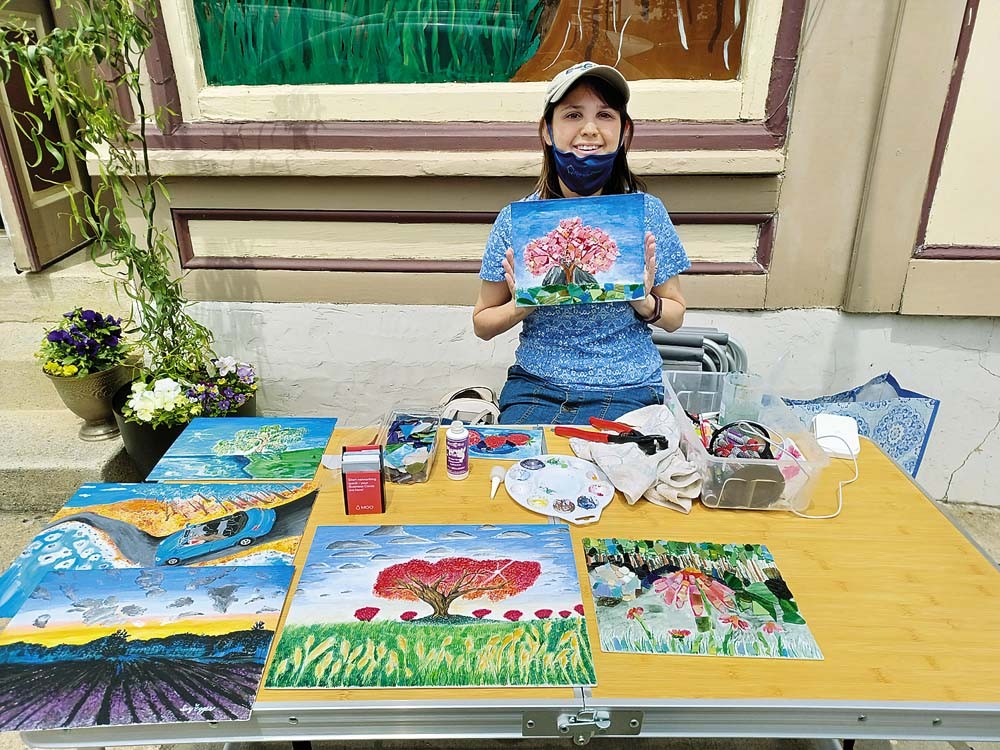 Among the artists featured during the day were Jenny Alexander from the Painted Lily, who demonstrated her floral collage technique, and Ivy Egger of Vine Designs, who attaches items to her paintings to create 3D pieces. "I turn paintings into mosaics," she explained. "I (add) beads, tile and even some seashells."